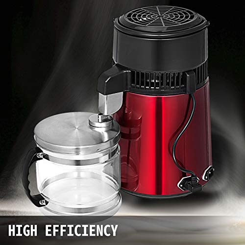 VEVOR-waterdestillator, rood, 750 W, roestvrij staal, 4 L, destillatie-thermometer, voor kantoren, thuis, op reis