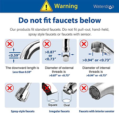 Belangrijke opmerking: Werkt met standaard kranen. Past niet op uittrekbare, handbediende, spatwaterdichte kranen of kranen met sensor. Controleer of ons product geschikt is voor uw kraan voordat u het koopt volgens de gedetailleerde instructies in de productfoto’s.