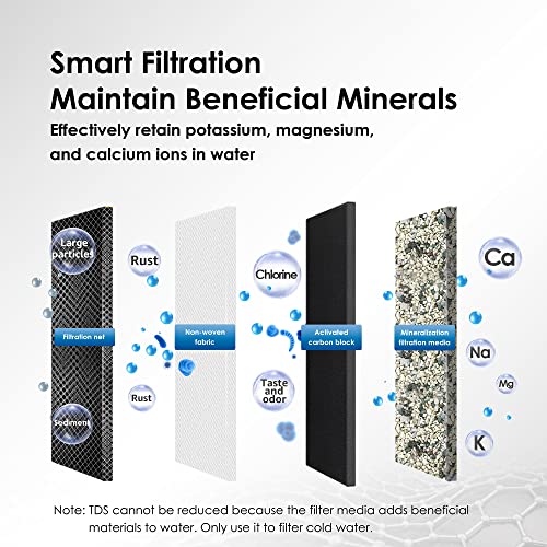 Opmerking: Dit systeem verlaagt de TDS-waarde NIET als gevolg van de toegevoegde mineralen in het water. Als u wilt dat de TDS-waarde te verlagen, kiest u Waterdrop RO-systeem. Bedrijfstemperatuur: 41-100℉/ 5-38℃; Werkende Druk: 15-100 psi / 100-689 kPa.