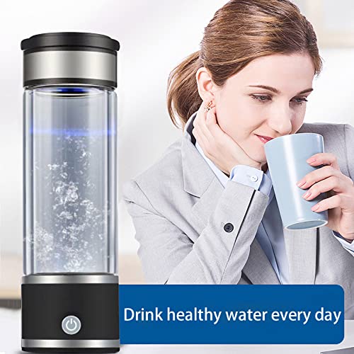 Eenvoudig en veilig: waterstofwatermachine met één knop, oplaadbaar via USB en meer geld dan waterstofwater of h2-water. Gemaakt van Food grade borosilicaat glas en Food grade rubber, zonder schadelijke chemische subsances.Deze geïoniseerde waterfles kan ongeveer 15 keer worden gebruikt voor één opladen, gemakkelijk en handig voor kantoor, reizen, werk.
