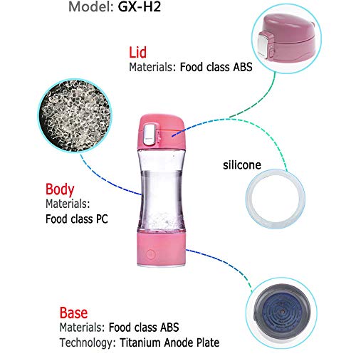 Specification: Waterstoffles 400 ml Waterstofrijke watergenerator Alkalische watermaker SPE-technologie Ionisator Ontlading Chloor en ozon USB oplaadbaar waterfiltratiesysteem Anti-veroudering, energiek,